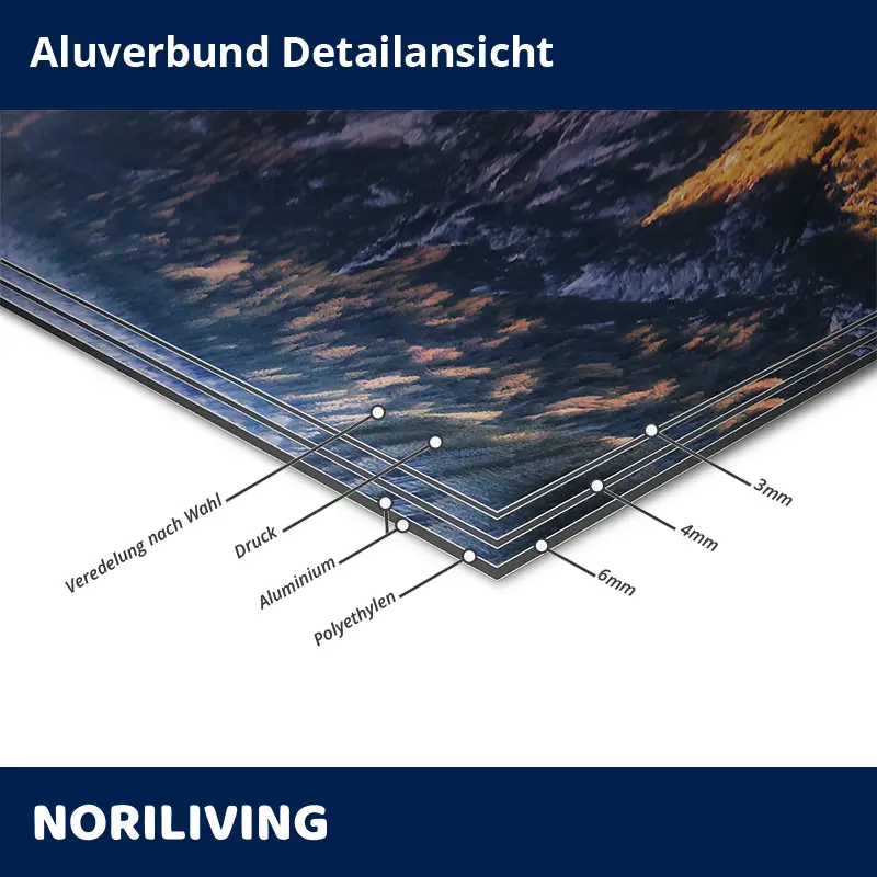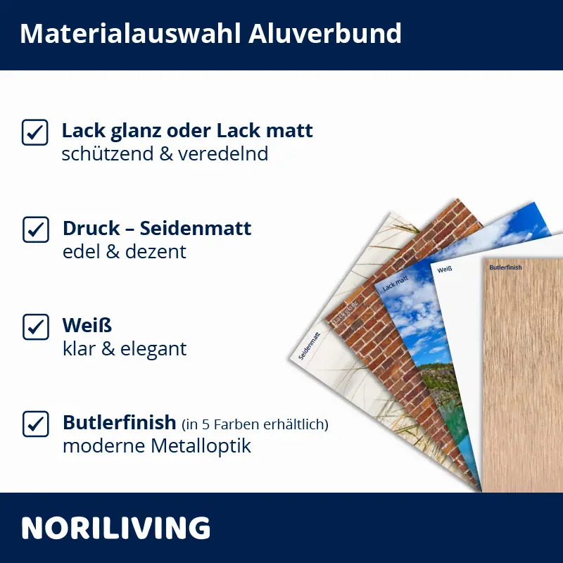 - Alu-Verbundplatten in 3 mm, 4 mm oder 6 mm Stärke