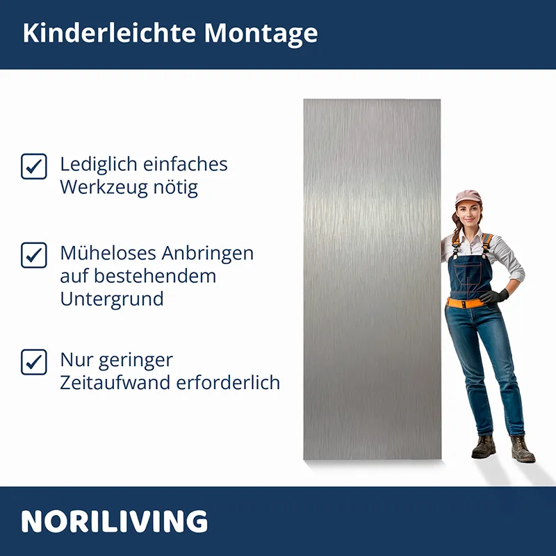 - Die Platten lassen sich auf nahezu jedem Untergrund befestigen. Wichtig ist, dass die Fläche eben und glatt ist. Bei Fliesen müssen vor der Montage Seifenreste und Verschmutzungen gründlich entfernt werden. Anschließend die Fliesen fettfrei reinigen und vollständig trocknen lassen.